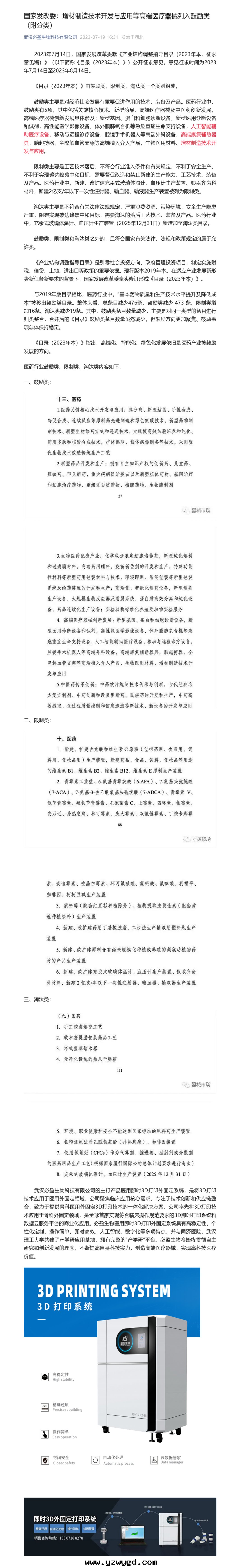 國(guó)家發(fà)改委:增材制造技術(shù)開(kāi)發(fà)與(yǔ)應(yìng)用(yòng)等高(gāo)端醫療器械列入(rù)鼓勵類(lèi)(附分類(lèi))