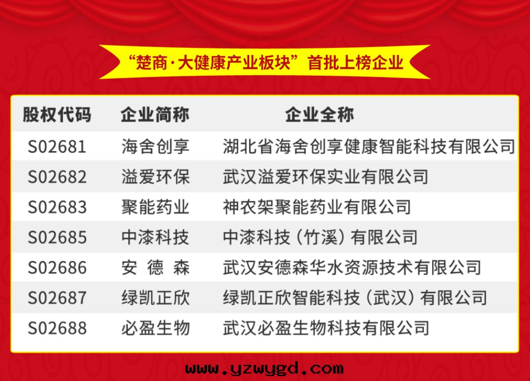 11月(yuè)12日(rì)下(xià)午,正(zhèng)值第(dì)二(èr)屆世界大(dà)健康博覽会(huì)在(zài)湖(hú)北武漢盛大(dà)召開(kāi)之(zhī)際,由(yóu)湖(hú)北省楚商聯合会(huì)和(hé)武漢股權托管(guǎn)交易中(zhōng)心(xīn)共(gòng)同培育的(de)“楚商·大(dà)健康産業闆块(kuài)”,在(zài)武漢國(guó)際博覽中(zhōng)心(xīn)B4健康金(jīn)融館(guǎn)舉行了(le)簡約而(ér)隆重(zhòng)的(de)啟動(dòng)儀式,首批7家楚商企業集体挂牌,这(zhè)是(shì)湖(hú)北也(yě)是(shì)全(quán)國(guó)区域資本市(shì)场(chǎng)首个(gè)大(dà)健康産業闆块(kuài)。