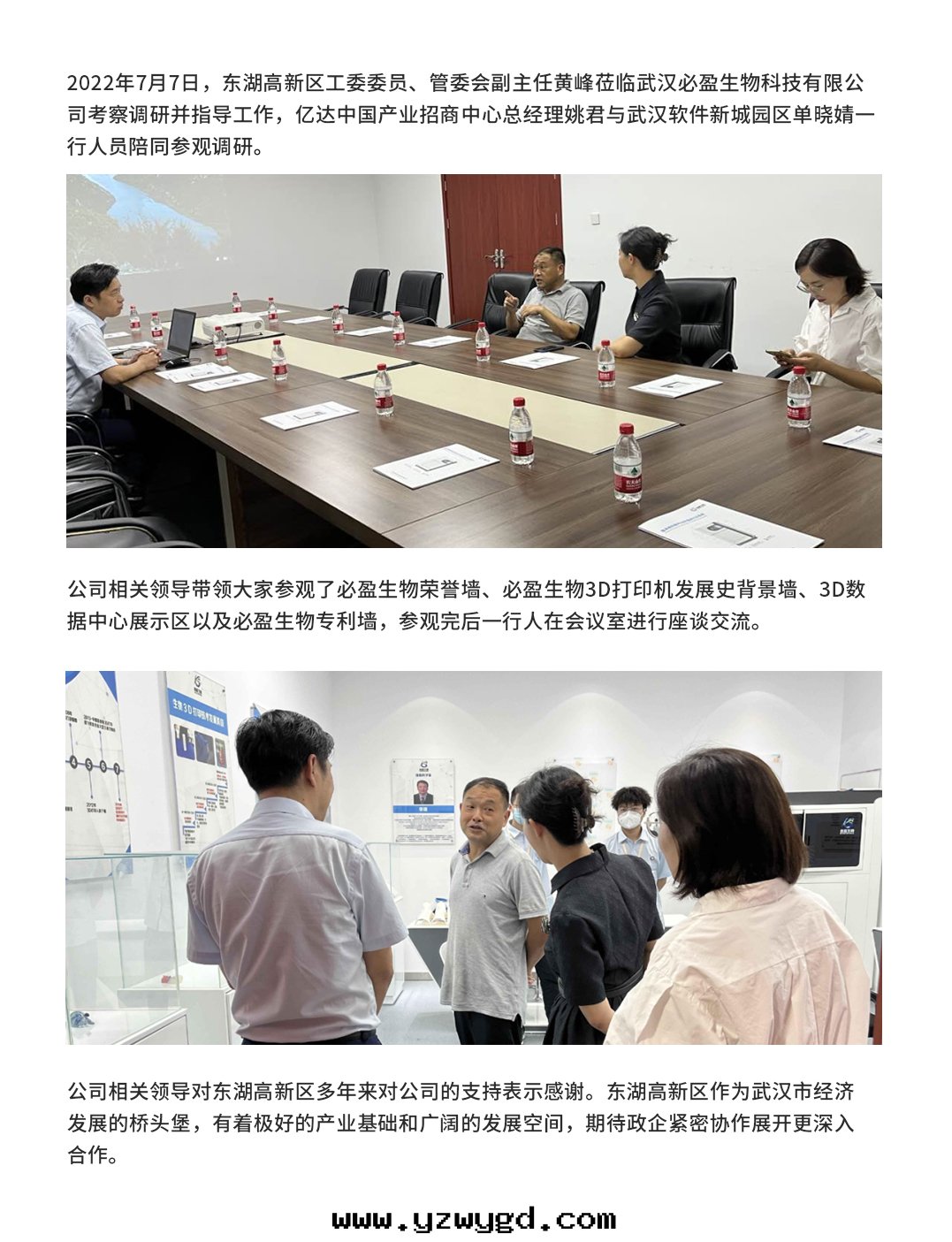武漢東(dōng)湖(hú)高(gāo)新(xīn)区工委委员、管(guǎn)委会(huì)副主任黃峰(fēng)莅臨必盈生(shēng)物(wù)調研指導