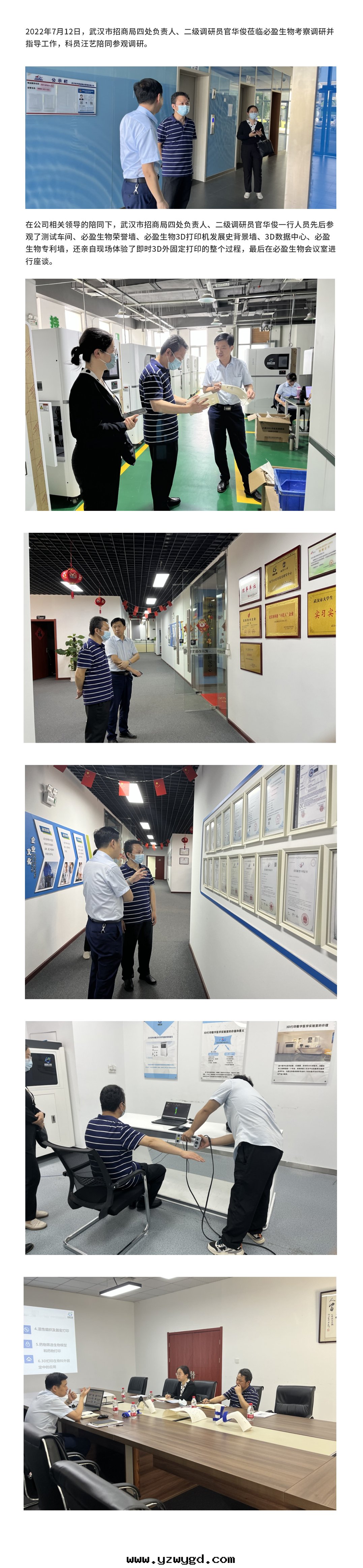 武漢市(shì)招商局(jú)四(sì)處(chù)负責人(rén)、二(èr)級調研员官華俊莅臨必盈生(shēng)物(wù)考察調研