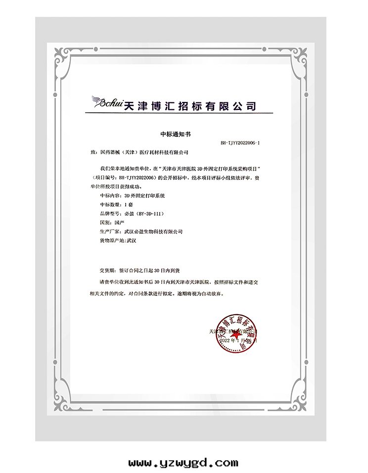 热(rè)烈慶祝必盈生(shēng)物(wù)3D外(wài)固定(dìng)打印(yìn)系(xì)統中(zhōng)标(biāo)“天津市(shì)天津醫院(yuàn)3D外(wài)固定(dìng)打印(yìn)系(xì)統采購項目”