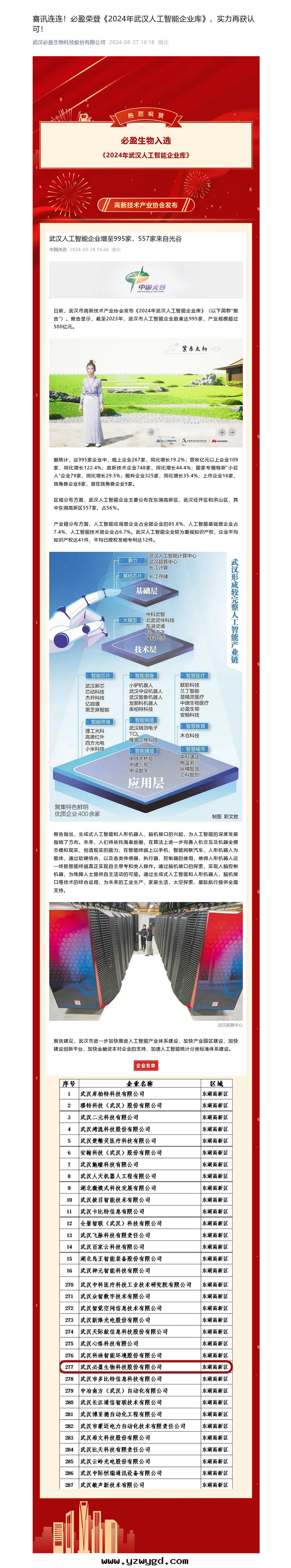 喜訊連(lián)連(lián)!必盈榮登《2024年(nián)武漢人(rén)工智能(néng)企業库》,實(shí)力再獲認可(kě)!