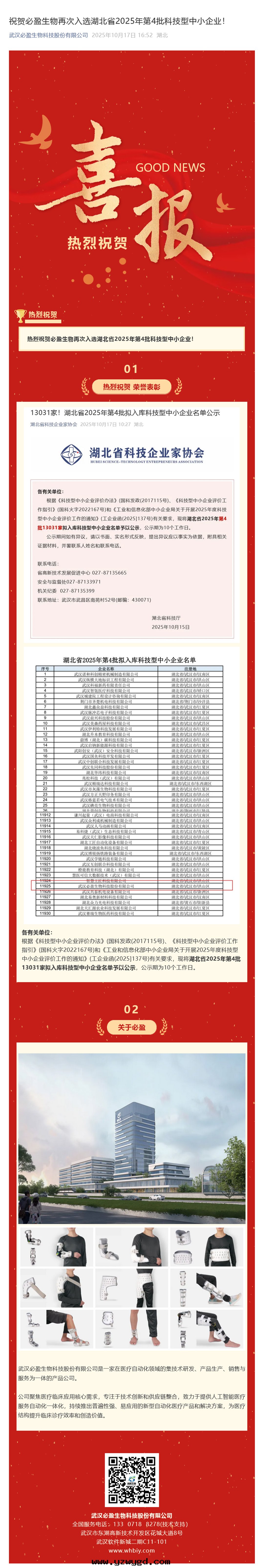 祝贺必盈生(shēng)物(wù)再次(cì)入(rù)選湖(hú)北省2025年(nián)第(dì)4批科技型中(zhōng)小企業!