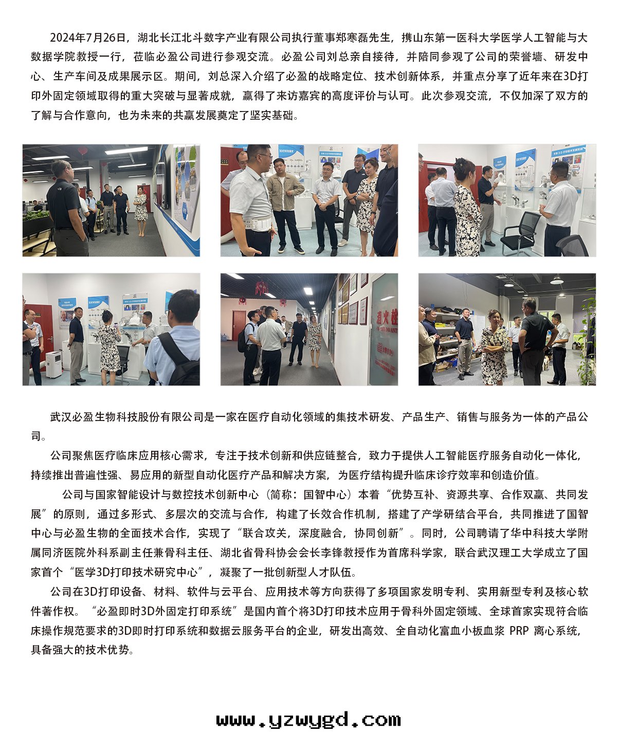 2024年(nián)7月(yuè)26日(rì),湖(hú)北长(cháng)江北斗(dǒu)數字産業有(yǒu)限公(gōng)司執行董事(shì)鄭寒磊先(xiān)生(shēng),攜山(shān)東(dōng)第(dì)一(yī)醫科大(dà)學(xué)醫學(xué)人(rén)工智能(néng)與(yǔ)大(dà)數據(jù)學(xué)院(yuàn)教授一(yī)行人(rén)參觀必盈