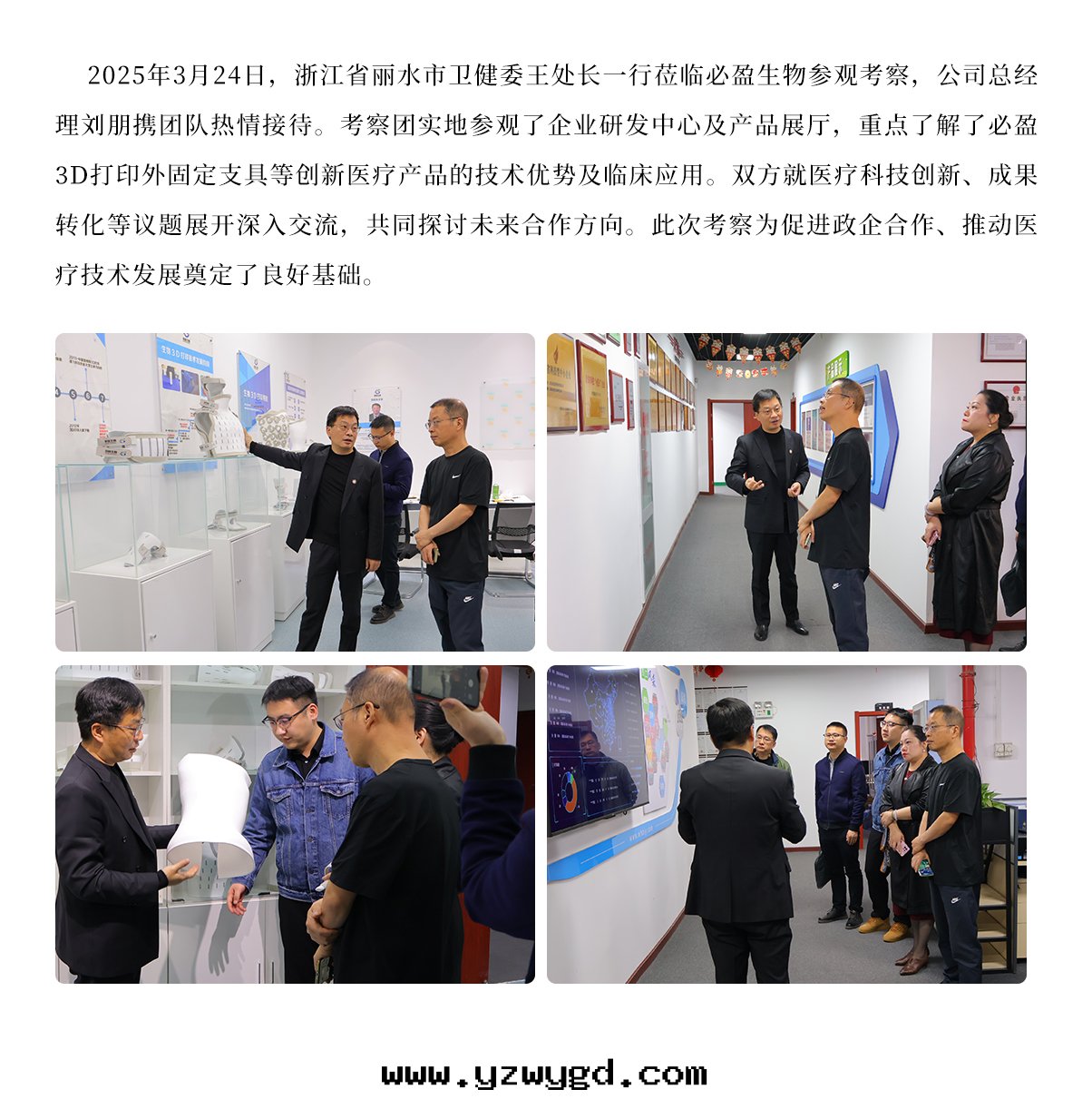 2025年(nián)3月(yuè)24日(rì)浙江省麗水(shuǐ)市(shì)衛健委的(de)王處(chù)长(cháng)一(yī)行人(rén)莅臨必盈參觀,必盈總(zǒng)經(jīng)理(lǐ)热(rè)情(qíng)接待