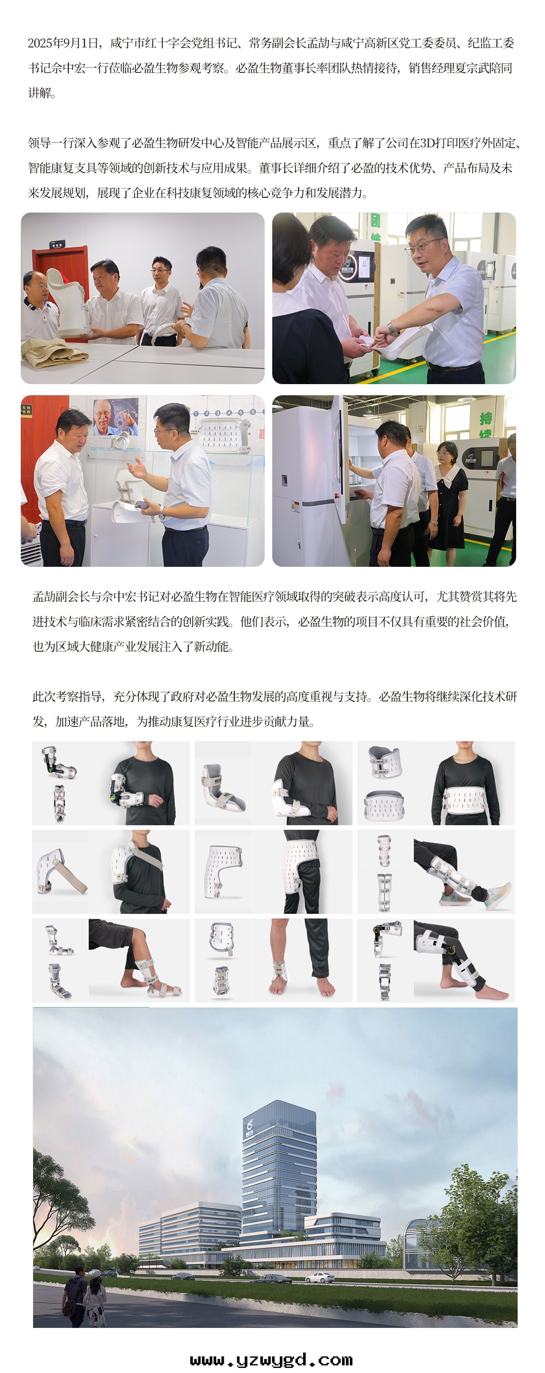2025年(nián)9月(yuè)1日(rì)咸甯市(shì)红十(shí)字会(huì)黨組書(shū)記(jì),常務(wù)副会(huì)长(cháng)孟劼,咸甯高(gāo)新(xīn)区黨工委委员、紀監工委書(shū)記(jì)佘中(zhōng)宏一(yī)行人(rén)莅臨必盈參觀