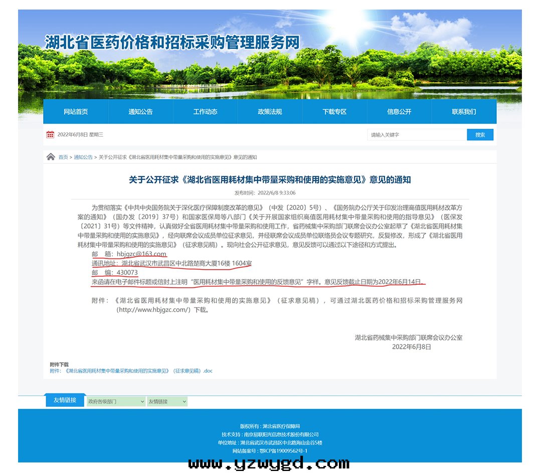 關(guān)于(yú)公(gōng)開(kāi)征求《湖(hú)北省醫用(yòng)耗材集中(zhōng)带量(liàng)采購和(hé)使用(yòng)的(de)實(shí)施意(yì)見(jiàn)》意(yì)見(jiàn)的(de)通(tòng)知