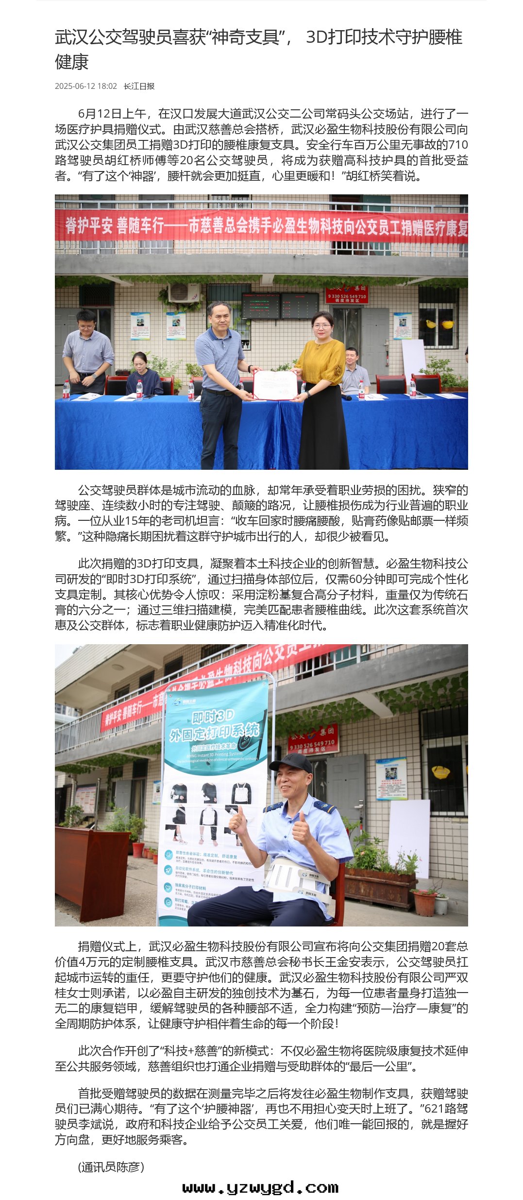 长(cháng)江日(rì)報報道(dào)(武漢公(gōng)交駕驶员喜獲“神奇支具”, 3D打印(yìn)技術(shù)守護腰椎健康)