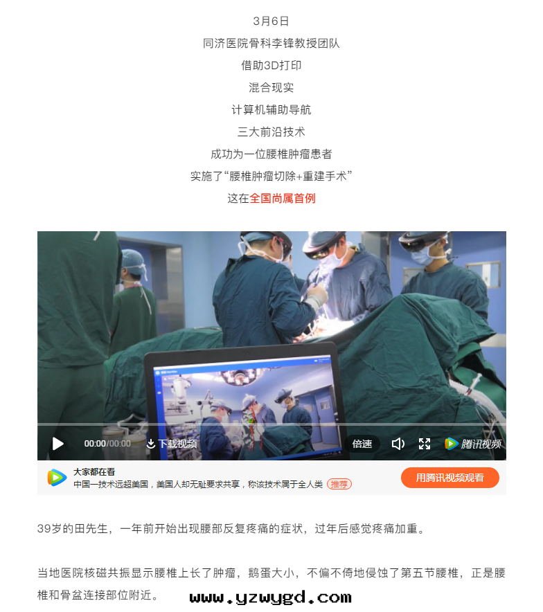 全(quán)國(guó)首例!醫生(shēng)带着“黑(hēi)超”眼(yǎn)鏡(jìng),为(wèi)他(tā)換上(shàng)一(yī)节(jié)3D打印(yìn)的(de)腰椎
