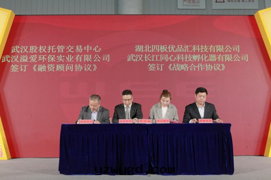 活動(dòng)現(xiàn)场(chǎng),武漢股權托管(guǎn)交易中(zhōng)心(xīn)與(yǔ)武漢溢爱环(huán)保實(shí)業有(yǒu)限公(gōng)司签(qiān)訂了(le)融資顧問(wèn)協议;湖(hú)北四(sì)闆優品彙科技有(yǒu)限公(gōng)司與(yǔ)武漢长(cháng)江同心(xīn)科技孵化(huà)器有(yǒu)限公(gōng)司签(qiān)訂了(le)戰略合作(zuò)協议。