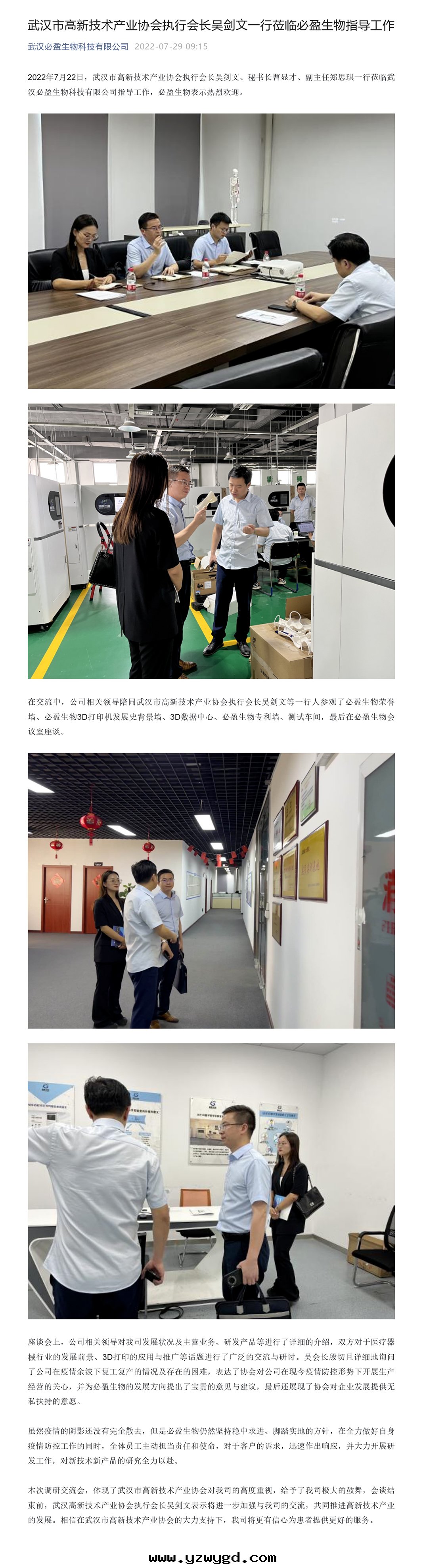 武漢市(shì)高(gāo)新(xīn)技術(shù)産業協会(huì)執行会(huì)长(cháng)吳劍文(wén)一(yī)行莅臨必盈生(shēng)物(wù)指導工作(zuò)!