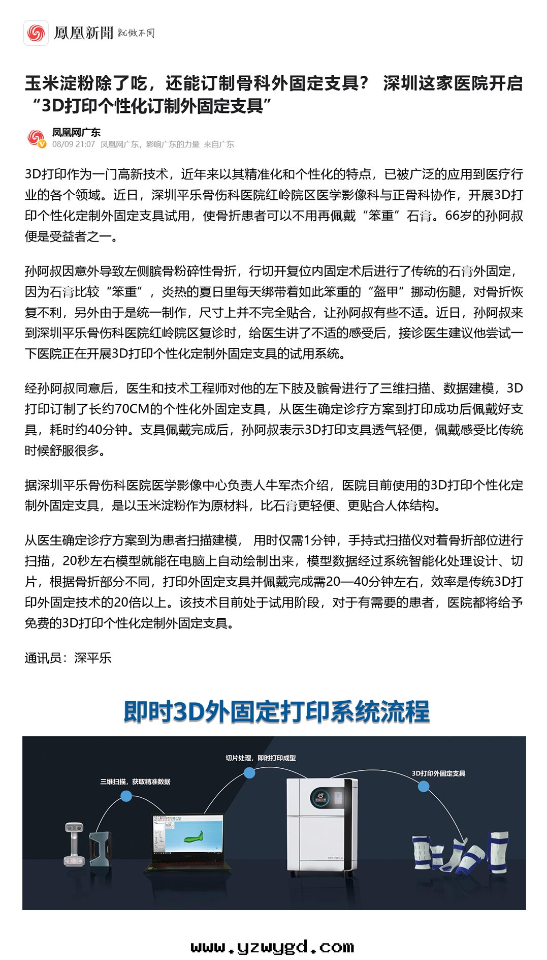 感(gǎn)謝鳳凰新(xīn)聞为(wèi)必盈合作(zuò)醫院(yuàn)宣传報道(dào),必盈即时(shí)3D外(wài)固定(dìng)打印(yìn)系(xì)統真是(shì)人(rén)類(lèi)的(de)福音(yīn)啊!