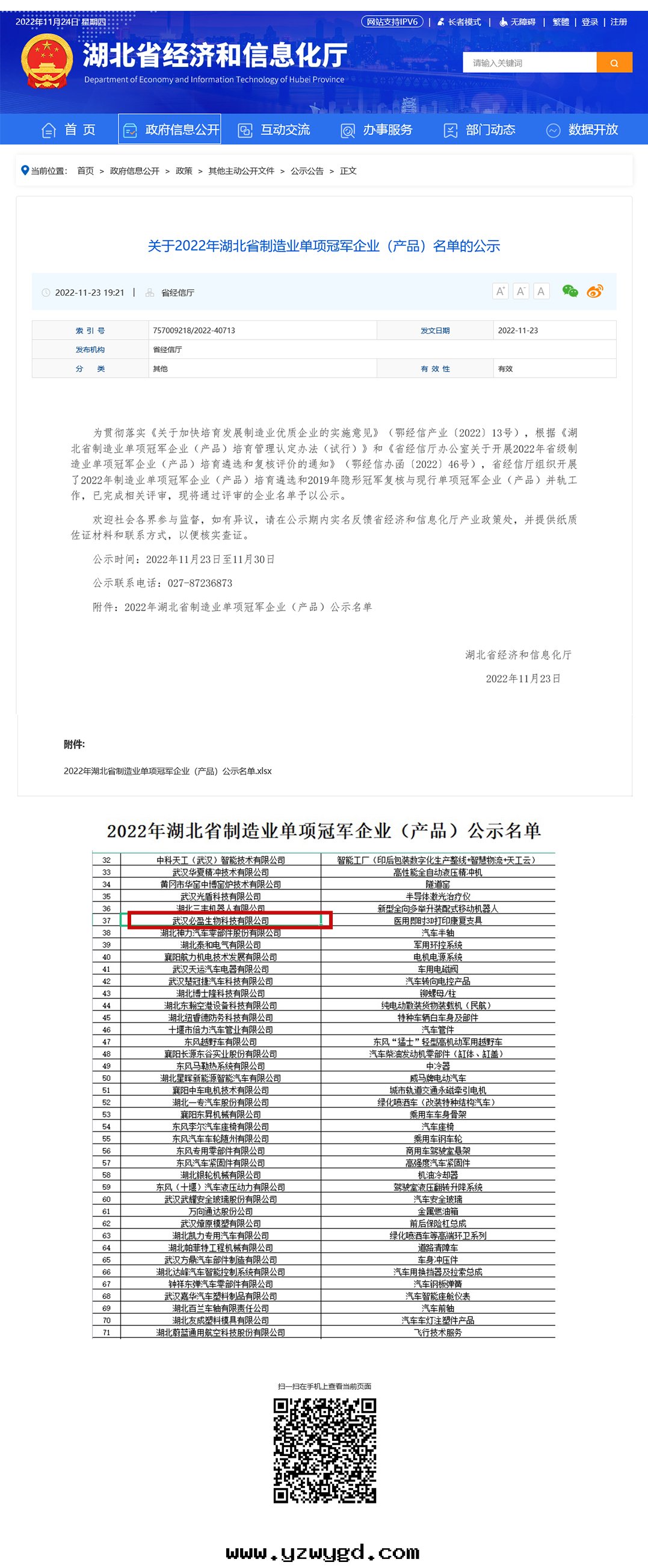 热(rè)烈祝贺必盈生(shēng)物(wù)入(rù)選湖(hú)北省制造業單項冠軍企業(産品)