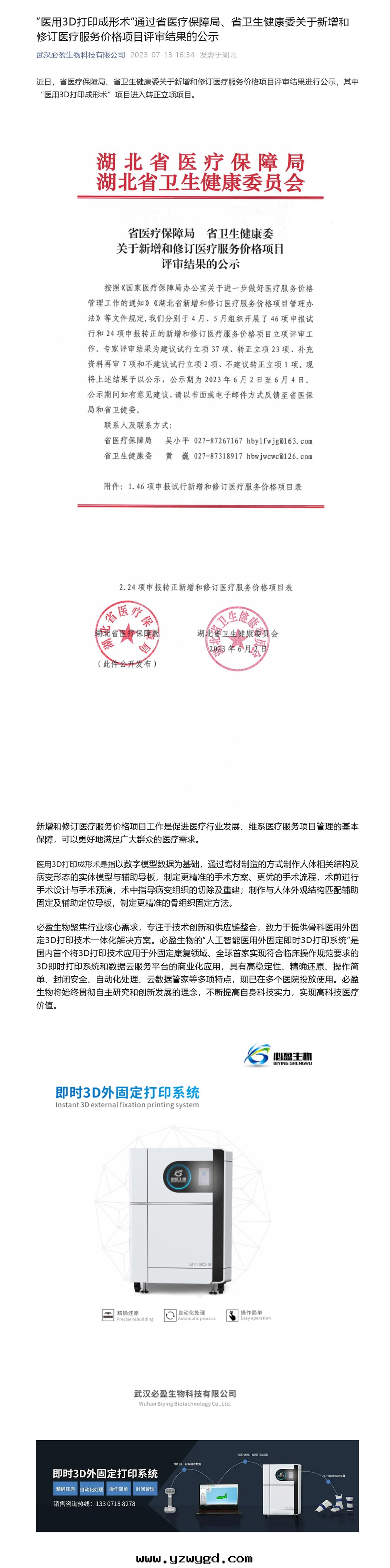 “醫用(yòng)3D打印(yìn)成(chéng)形術(shù)”通(tòng)过省醫療保障局(jú)、省衛生(shēng)健康委關(guān)于(yú)新(xīn)增和(hé)修訂醫療服(fú)務(wù)價格項目評審結果(guǒ)的(de)公(gōng)示