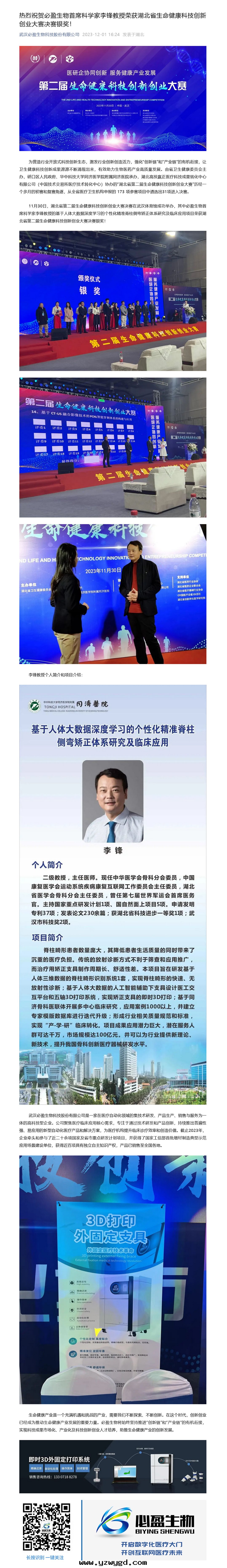热(rè)烈祝贺必盈生(shēng)物(wù)首席(xí)科學(xué)家李鋒教授榮獲湖(hú)北省生(shēng)命健康科技創新(xīn)創業大(dà)賽決賽银(yín)獎!