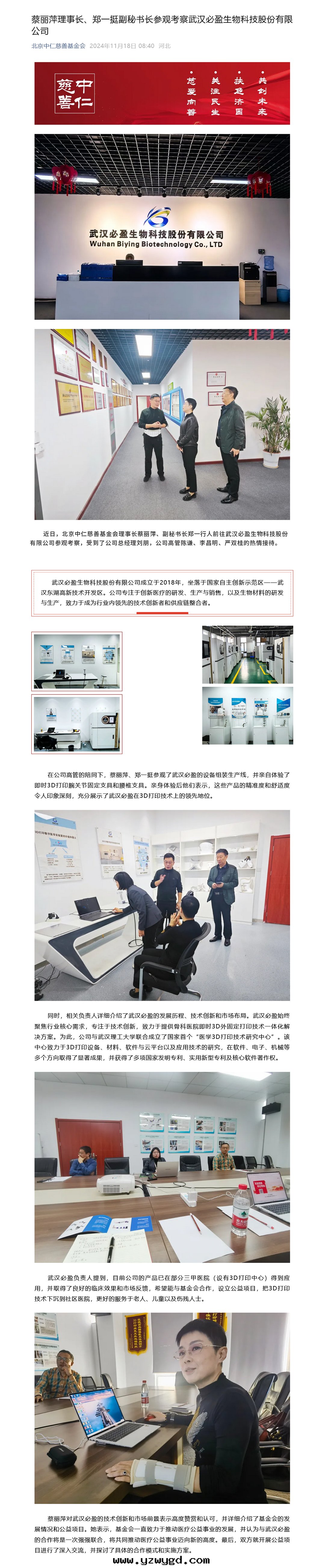 北京(jīng)中(zhōng)仁慈善基金(jīn)会(huì)蔡麗萍理(lǐ)事(shì)长(cháng)、鄭一(yī)挺副秘書(shū)长(cháng)參觀考察武漢必盈生(shēng)物(wù)科技股份有(yǒu)限公(gōng)司