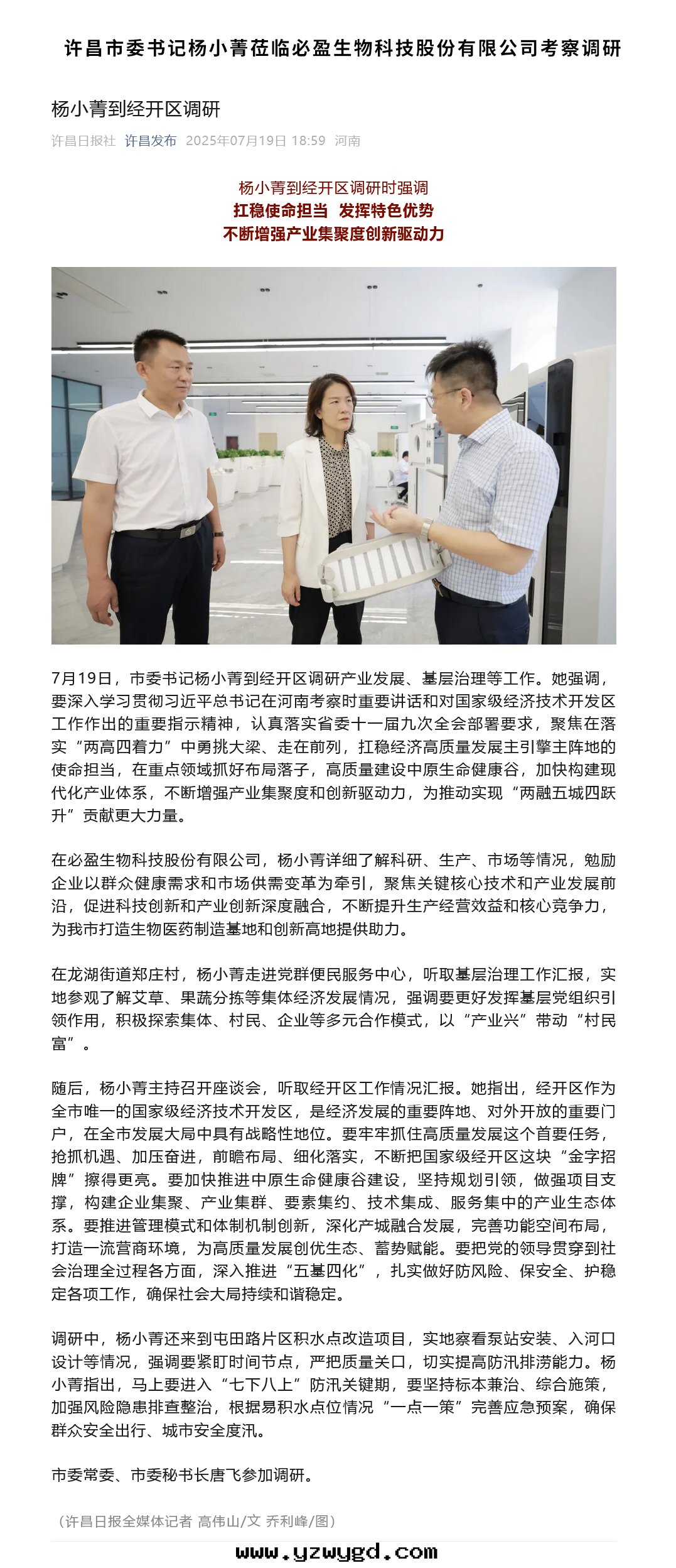 許昌市(shì)委書(shū)記(jì)杨小菁莅臨必盈生(shēng)物(wù)科技考察調研