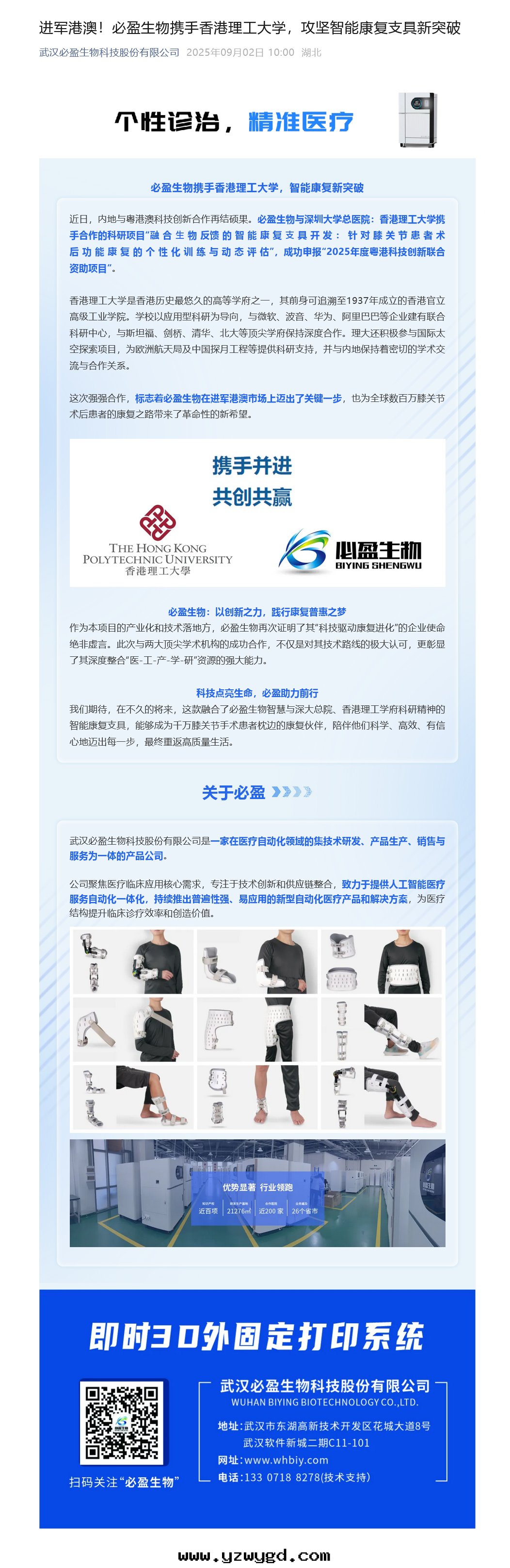 進(jìn)軍港澳!必盈生(shēng)物(wù)攜手(shǒu)香(xiāng)港理(lǐ)工大(dà)學(xué),攻堅智能(néng)康複支具新(xīn)突破