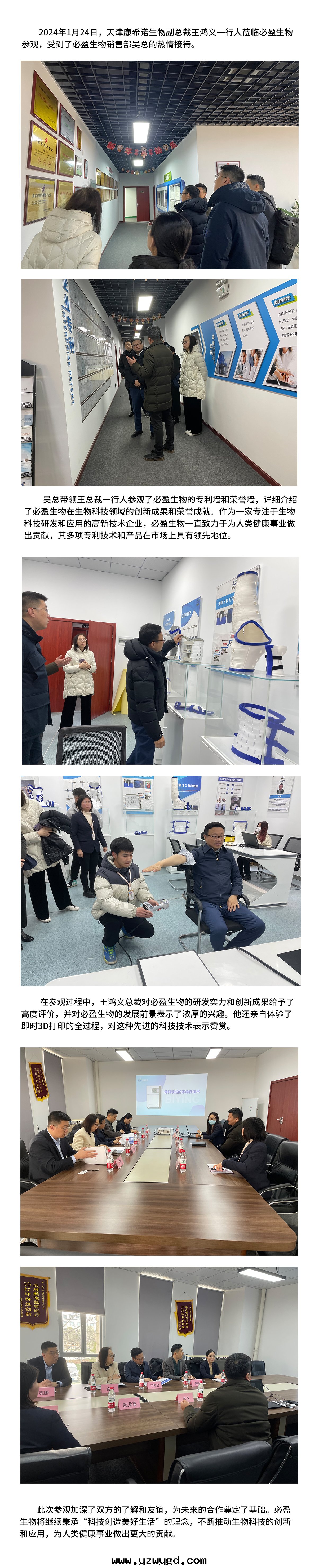 2024年(nián)1月(yuè)24日(rì),天津康希諾生(shēng)物(wù)副總(zǒng)裁王鴻義一(yī)行人(rén)莅臨必盈參觀