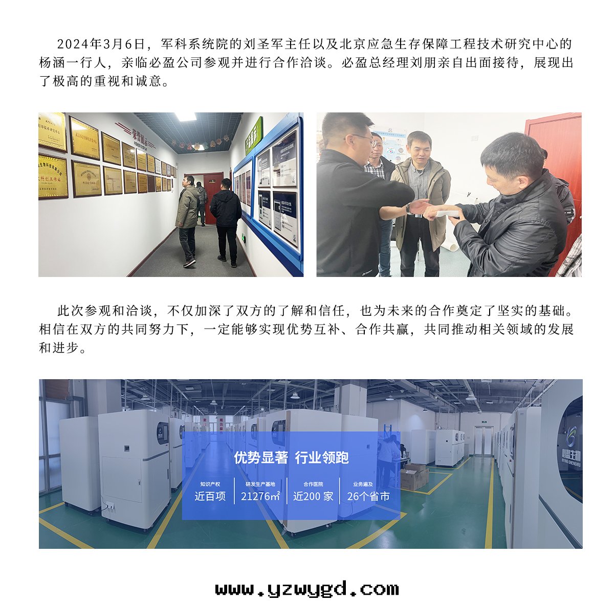 2024年(nián)3月(yuè)6日(rì)軍科系(xì)統院(yuàn)劉聖軍主任、北京(jīng)應(yìng)急生(shēng)存保障工程技術(shù)研究中(zhōng)心(xīn)杨涵一(yī)行人(rén)莅臨必盈參觀