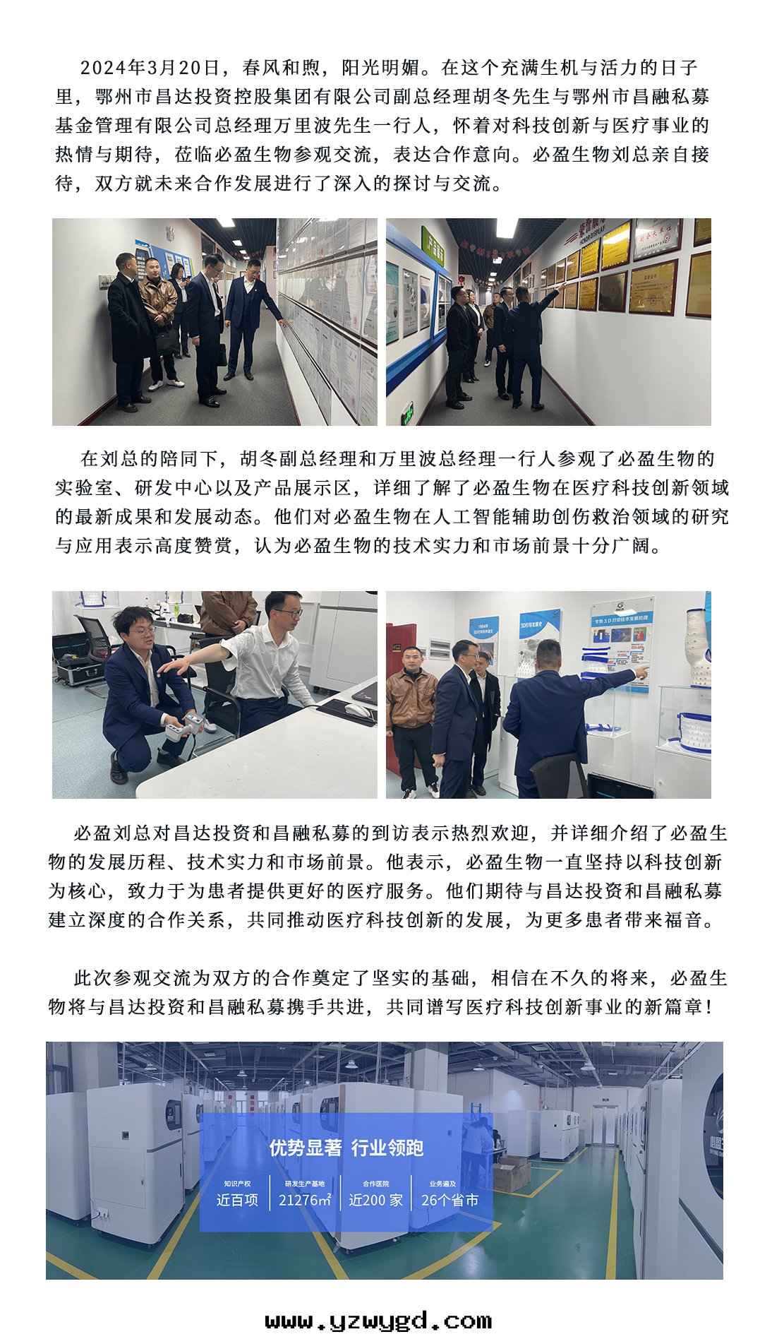 2024年(nián)3月(yuè)20日(rì)鄂州市(shì)昌达投資控股集团(tuán)有(yǒu)限公(gōng)司副總(zǒng)經(jīng)理(lǐ)胡冬一(yī)行人(rén)来(lái)必盈考察工作(zuò)