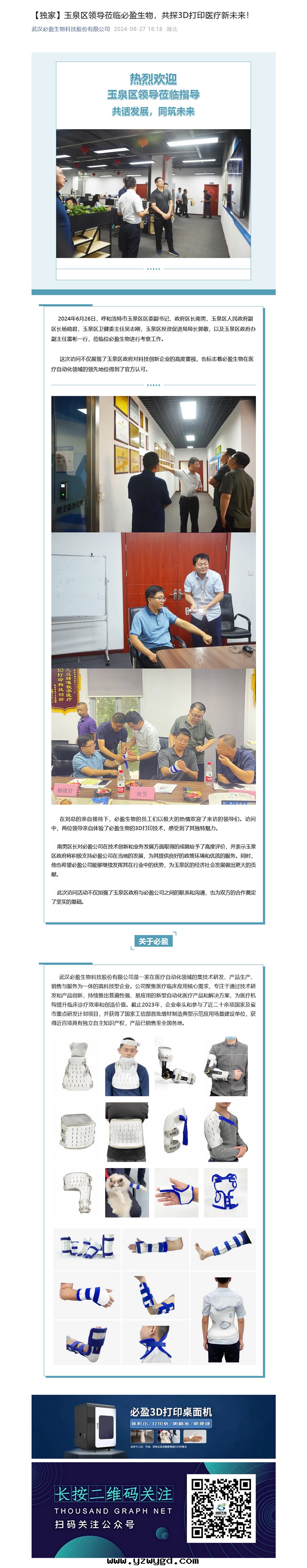 2024年(nián)6月(yuè)26日(rì)玉(yù)泉(quán)区領導莅臨必盈生(shēng)物(wù),共(gòng)探3D打印(yìn)醫療新(xīn)未来(lái)!