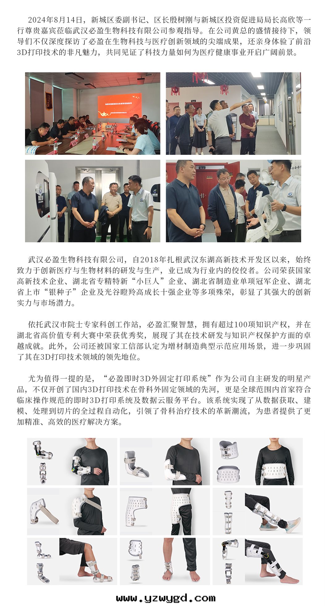 2024年(nián)8月(yuè)15日(rì),呼和(hé)浩特(tè)新(xīn)城(chéng)区委副書(shū)記(jì)、区长(cháng)殷樹(shù)剛與(yǔ)新(xīn)城(chéng)区投資促進(jìn)局(jú)局(jú)长(cháng)高(gāo)欣等一(yī)行尊(zūn)貴嘉賓莅臨武漢必盈生(shēng)物(wù)科技有(yǒu)限公(gōng)司參觀指導