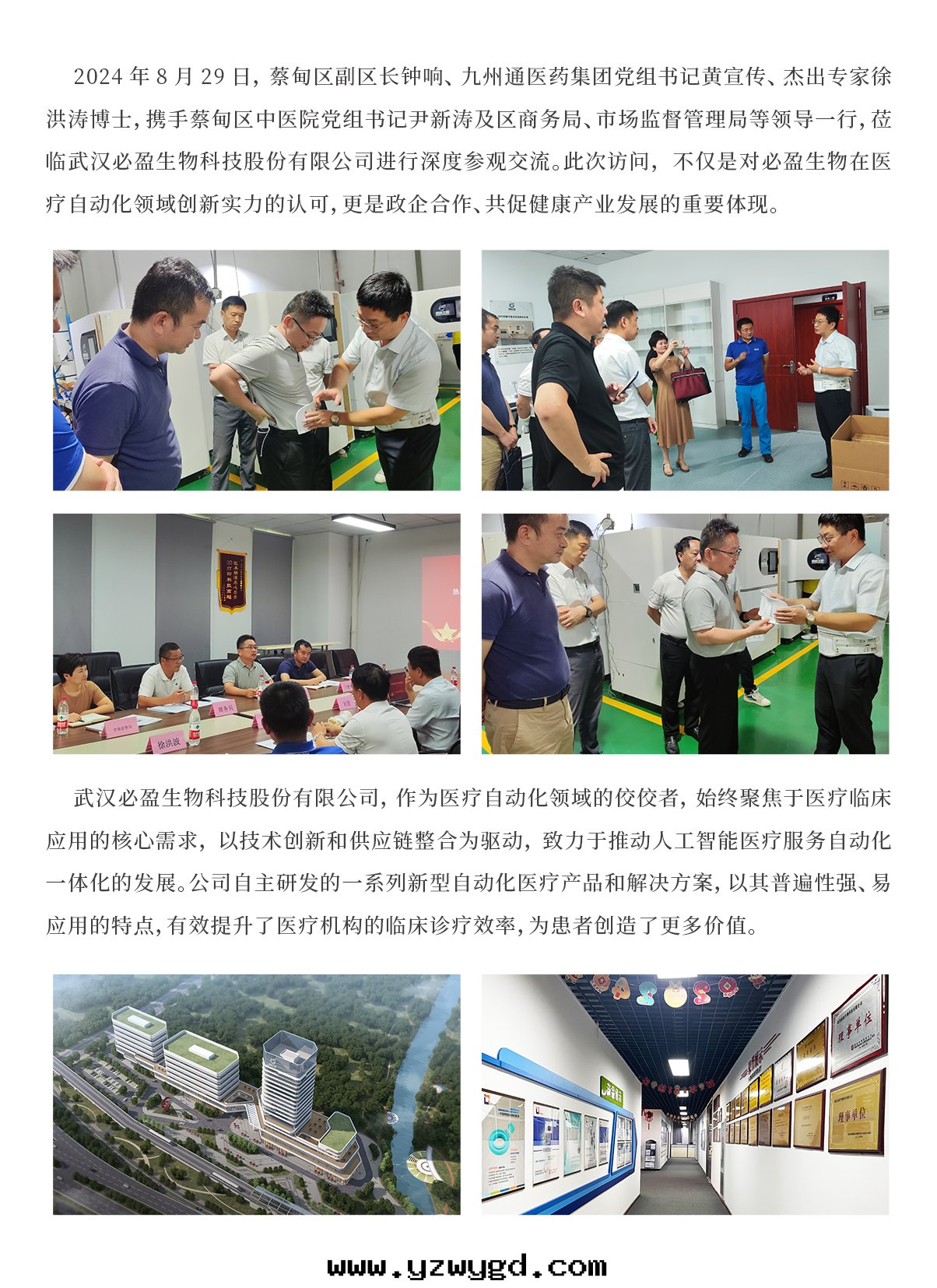 2024年(nián)8月(yuè)29蔡甸区副区长(cháng)鐘(zhōng)響,九(jiǔ)州通(tòng)醫藥集团(tuán)黨組書(shū)記(jì)黃宣传,徐洪濤(tāo)博士,蔡甸区中(zhōng)醫院(yuàn)黨組書(shū)記(jì)尹新(xīn)濤(tāo)、商務(wù)局(jú)、市(shì)场(chǎng)監督管(guǎn)理(lǐ)局(jú)一(yī)行莅臨必盈參觀