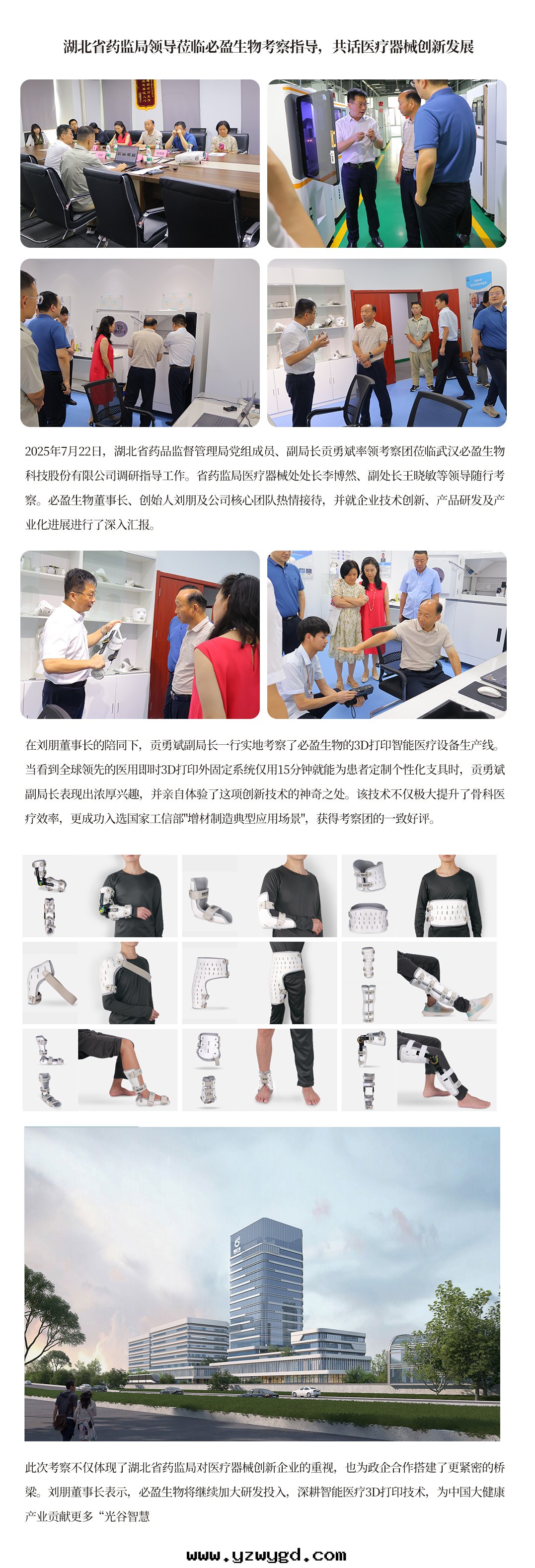 2025年(nián)7月(yuè)22日(rì)湖(hú)北省藥監局(jú)副局(jú)长(cháng)貢勇斌、醫療器械處(chù)處(chù)长(cháng)李博然、醫療器械處(chù)副處(chù)长(cháng)王曉敏一(yī)行人(rén)莅臨必盈考察工作(zuò)