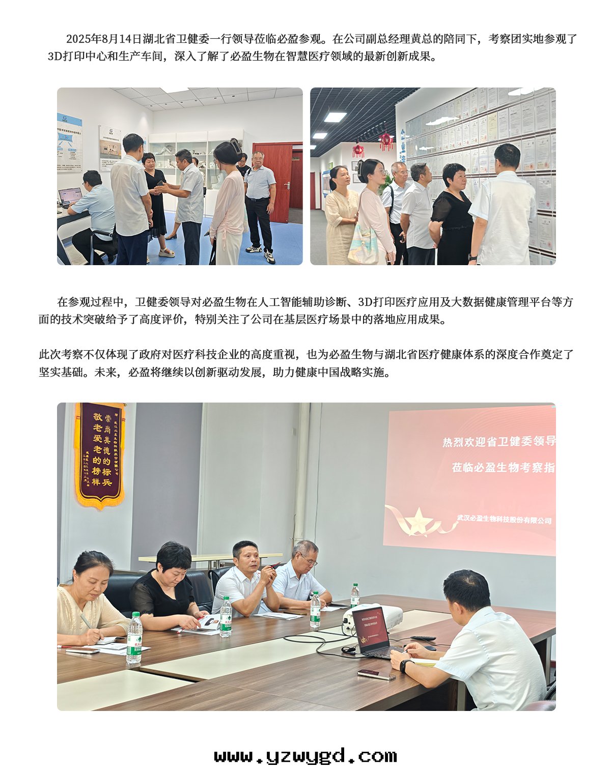 2025年(nián)8月(yuè)14日(rì)湖(hú)北省衛健委一(yī)行領導莅臨必盈參觀
